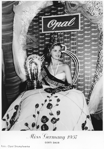 Nie hätte ich geahnt, dass Miss Germany-Sein harte Arbeit bedeutet: Fast 12 Monate war ich im In-und Ausland unterwegs. Das hieß als Repräsentantin für Opal und Sponsoren von morgens bis abends Werbung zu machen. Tagsüber Autogrammstunden und Verkaufsveranstaltungen, verbunden mit abendlichen VIP-Einladungen. Weiterfahrt in den nächsten Ort, nur wenige Stunden Schlaf. Jeder Tag begann um 8.3o Uhr mit einer Pressekonferenz, anschließend Präsenz, stets unter dem Motto "Immer nur lächeln." Manchmal war ich wie ausgelaugt.... Finanziell war die Zeit 1957/58 für mich ein Verlustgeschäft. Mein Salon fuhr nur mit halber Kraft, mein Vater gab mir 20.000 DM Kredit (1957 !!!), denn die Spesen von Opal waren erbärmlich, Tagessatz/Spesen 12 DM, Übernachtungspauschale 21 DM. Die Hoteliers machten jedoch oft Hollywoodpreise, nachdem Opal für mich gebucht hatte. Diese hohen Mehrkosten wurden mir per Monatsende vom Gehalt Brutto 800 DM abgezogen. Von meinen Extrakosten, wie Trinkgeldern, Kleidung, Reinigung, Frisör etc., etc. gar nicht zu reden. Die finanzielle Hilfe meines Vaters hielt mich über Wasser.